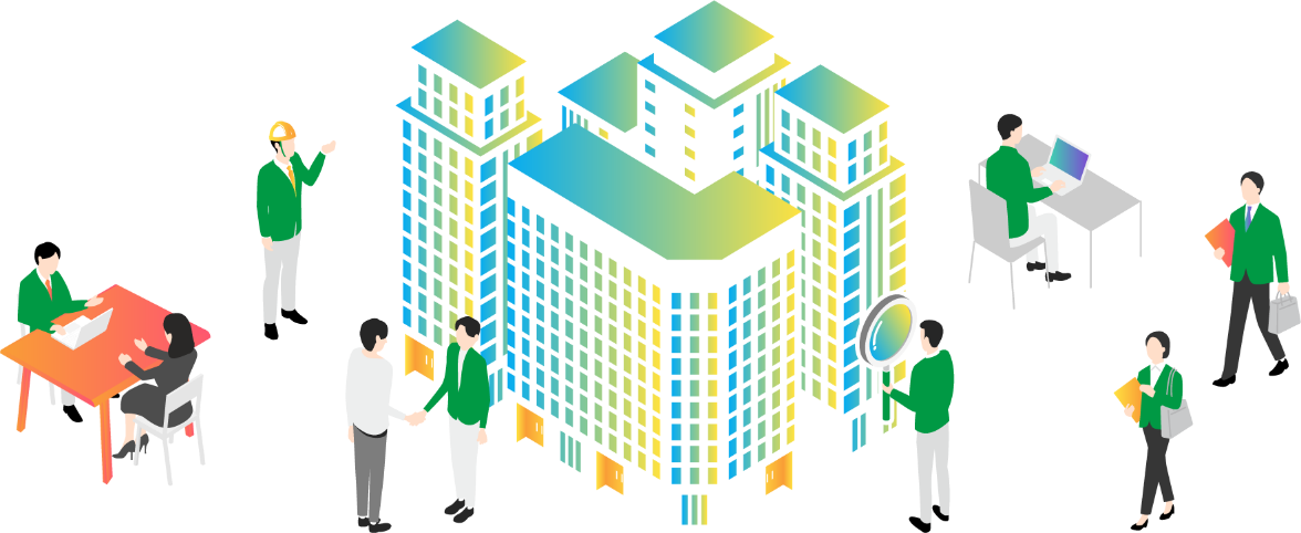 当社は建物のオーナー様に代わり、建物の総合的な管理を行うことで、利用者であるテナント様や建物に関わるすべての皆様に「安全・安心・快適」な環境を提供しています。